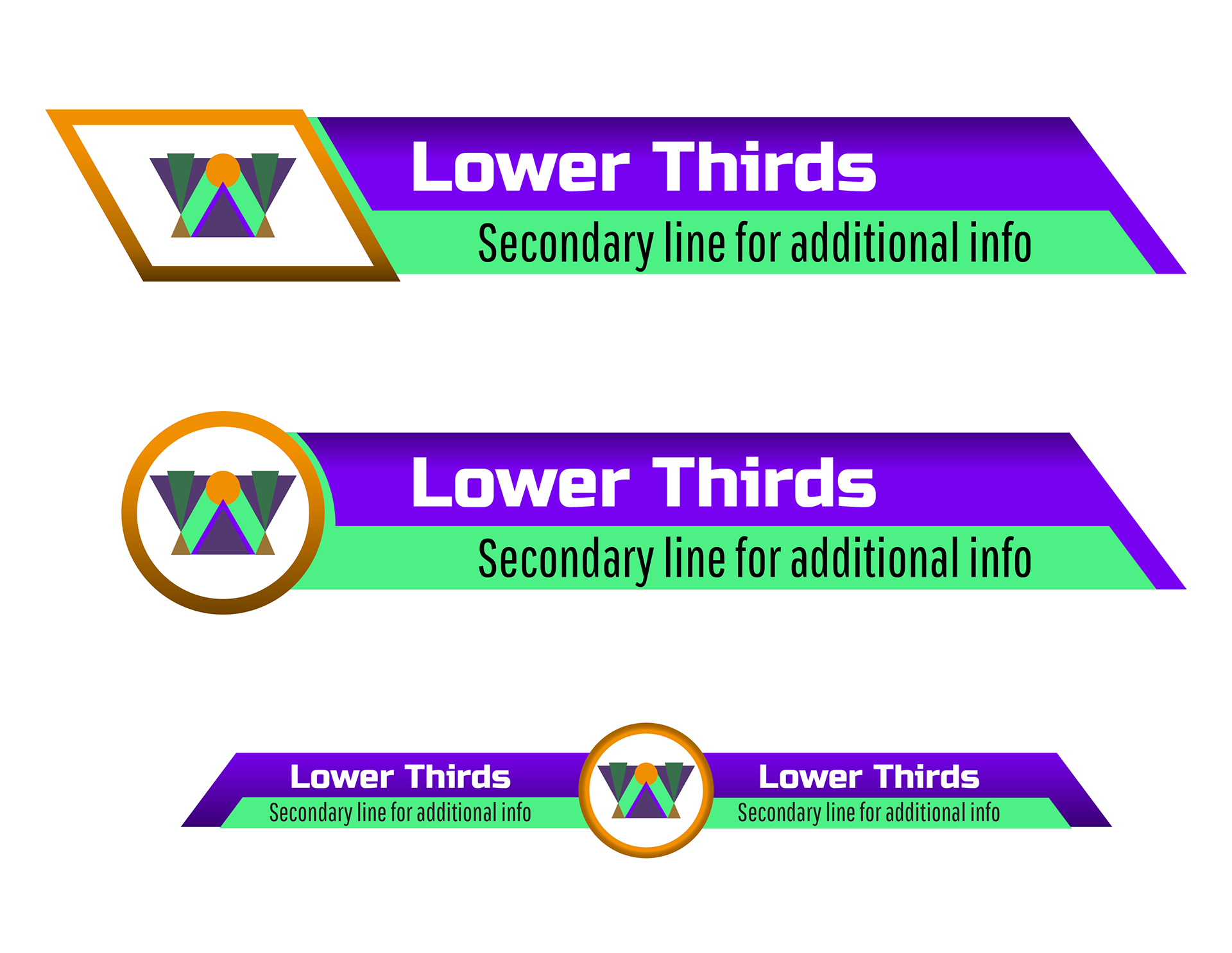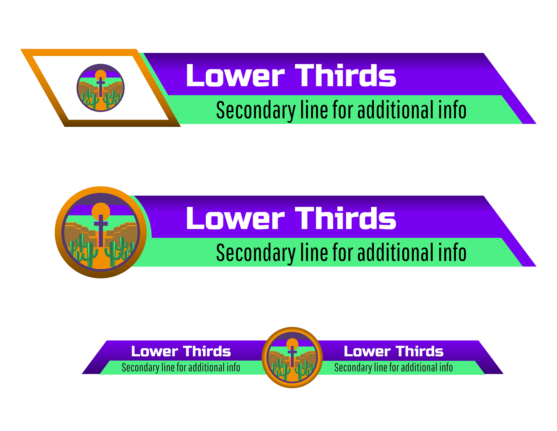 Then, I moved on to developing the design package assets, including designs for Lower Thirds, Bumpers, Logo Bugs, and Mortises. Mortises did not appear in the final video.